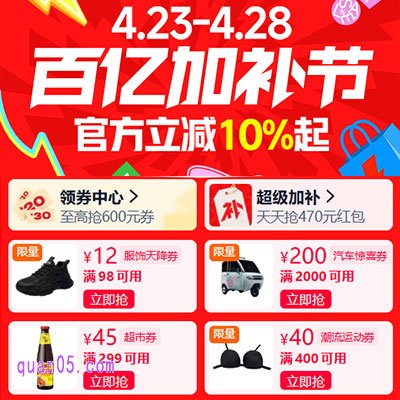第一波(百亿加补节):售卖时间4月23日20点-4月28日,全品类爆发促销。