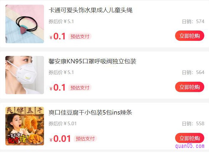 1、有些零元购的网站都实时更新一些0元就可以购买的淘宝商品。例如:http://c.quan05.com,网站上都是一些0-0.5元的廉价物品。基本上都是些小东西。