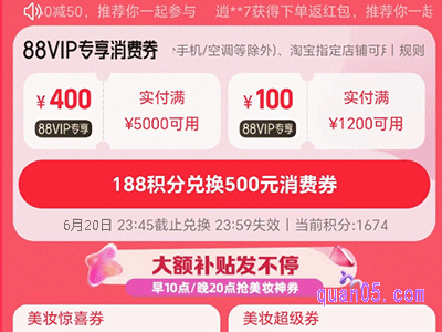 2、我们只需点击上面的链接,就能根据页面上的活动入口,进入到相应活动会场,即可在会场中领取88vip专属大额消费券了。
