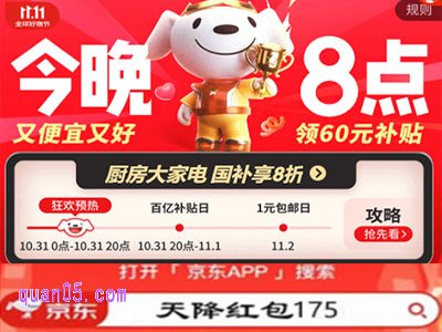 京东双十一主会场入口地址:https://l.quan05.com/item/301.html