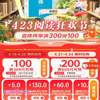 3、超值特惠:精选图书5折封顶,再享300减100元优惠券,折上折超划算!
