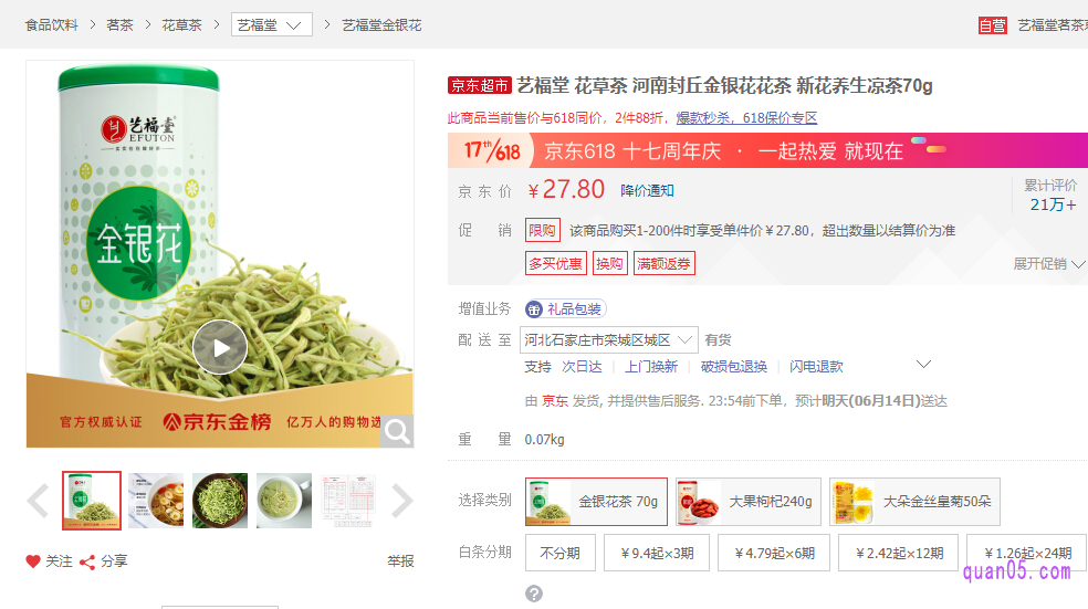 小编就以天猫商城和京东商城位列,给大家推荐几款卖的好的金银花的品牌,作为参考,希望可以帮到您。