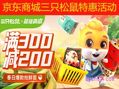 1、京东商城三只松鼠店铺现在有春日爆款抢鲜尝,以及超级满减活动(满300减200;满199减120)。