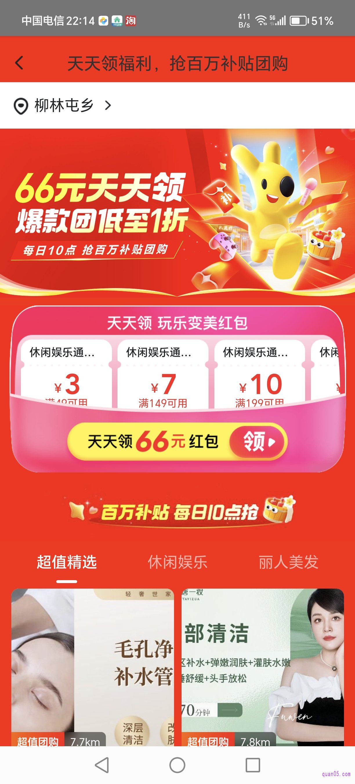 2、美团休闲玩乐的促销活动地址:https://l.quan05.com/item/276.html 。