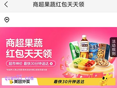 1、美团商超果蔬红包天天领活动地址:https://l.quan05.com/item/1016.html。