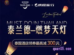携程资讯 携程泰国酒店促销活动,领300元泰国酒店专享优惠券 携程泰国酒店的促销活动,开展了泰兰德-燃梦天灯,泰国酒店领券最高减300元,具体的活动如下: 1、活动主题:泰兰德-燃梦天灯 2、活动时间: 9月24日开始 3、活动主要内容: 1)泰...