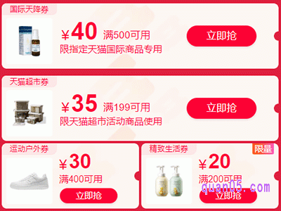 1、2024天猫年货券领取入口汇总地址:https://www.quan05.com/tbsczx/25089.html