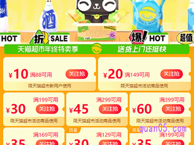 1、双十二天猫超市活动入口地址:https://l.quan05.com/item/141.html
